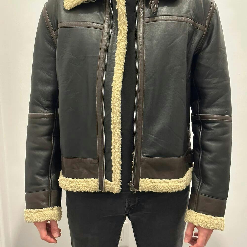 People who purchased this jacket usually comment on its warmth. The inner shearling keeps you warm even in extreme cold. The leather remains firm and smooth with time. Most customers report that it feels like a high-quality jacket when they put it on.